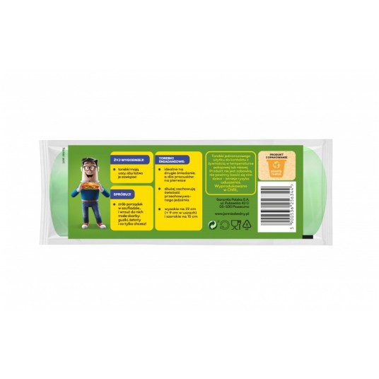 - Forma małej reklamówki ułatwia zawiązanie torebki i przenoszenie pakowanych produktów - Foliowe torebki śniadaniowe zawiązywane nie przepuszczają tłuszczu i wody, natomiast dzięki szczelnemu zamknięciu pomagają zachować świeżość przechowywanej żywności - W zawiązywanych torebkach śniadaniowych wygodnie przechowasz suche produkty, takie jak kasza, fasola czy orzechy, a także uchronisz je przed przesiąkaniem intensywnymi zapachami, np. przypraw - Torebek można używać również do przechowywania w lodówce kanapek, warzyw i owoców - Kolor jasnozielony z białym nadrukiem - Rozmiar: 15 cm x 22 cm + 9 cm (uszy) - W opakowaniu znajduje się 100 torebek