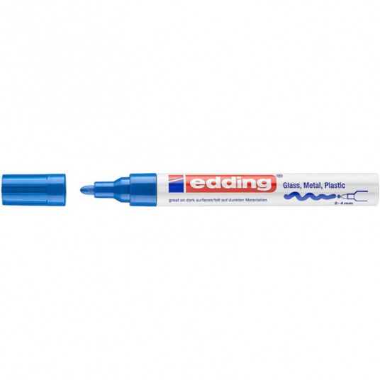 - Połyskujący marker olejowy do trwałego, wysoce kryjącego, odpornego na ścieranie pisania i dekorowania gładkich powierzchni - również ciemnych lub transparentnych, np. szkła, metalu, plastiku i szkła powlekanego - Okrągła końcówka pisząca o szerokości 2-4 mm - Pigmentowy tusz przypominający farbę jest szybkoschnący, odporny na zmienne warunki atmosferyczne, wyjątkowo odporny na działanie światła i na ścieranie - Zapasowe końcówki (wymienne końcówki do edding 750) są dostępne - Bezwonny tusz bez dodatku toulenu/ksylenu - Wysokiej jakości aluminiowa obudowa - Kolor: niebieski - Szerokość końcówki: 2-4 mm - Kształt końcówki: okrągła