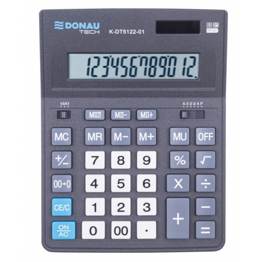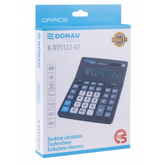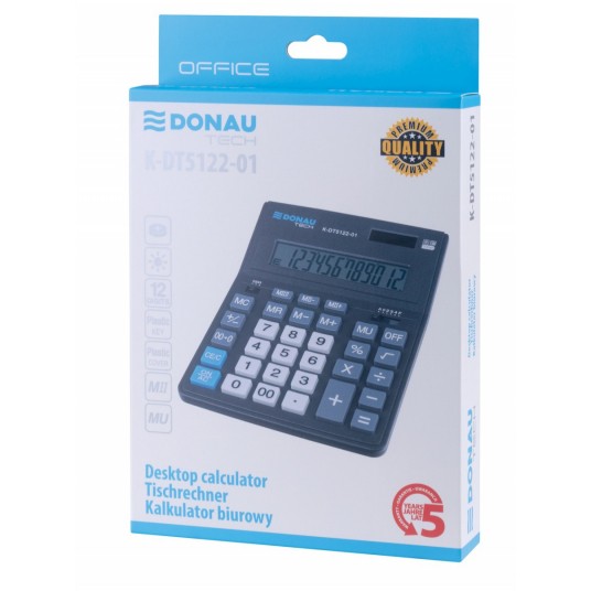 Kalkulator biurowy DONAU TECH OFFICE, CI-CDB1201BK, 12-cyfr. wyświetlacz, wym. 201x155x35mm, czarny