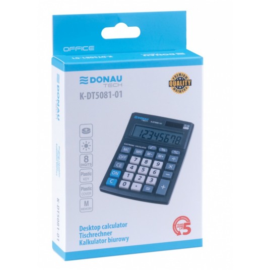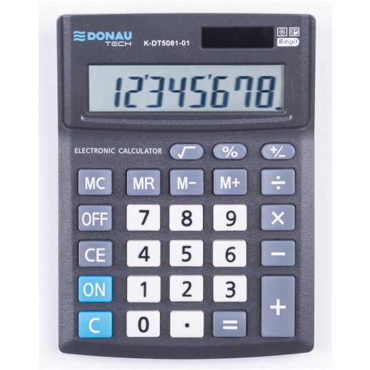 Kalkulator biurowy DONAU TECH OFFICE, CI-CMB801BK, 8-cyfr. wyświetlacz, wym. 137x101x30mm, czarny