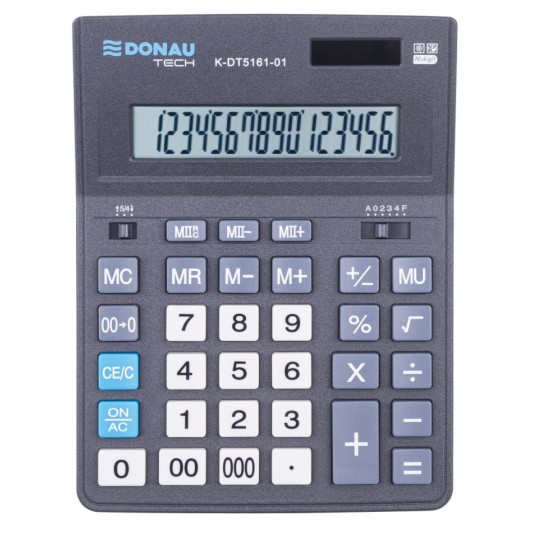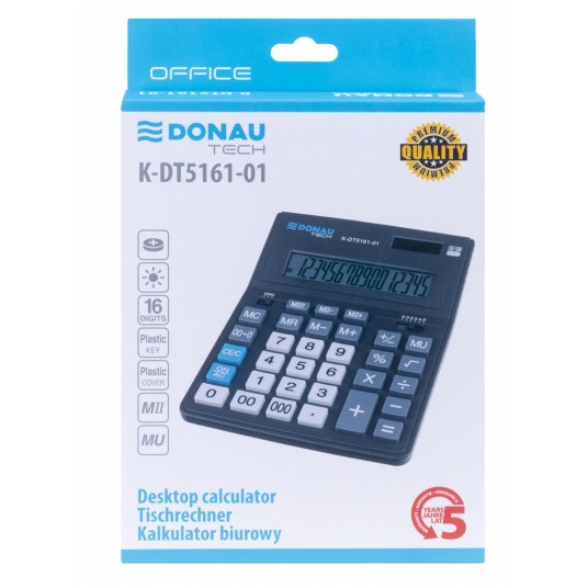 Kalkulator biurowy DONAU TECH OFFICE, CI-CDB1601BK, 16-cyfr. wyświetlacz, wym. 201x155x35mm, czarny
