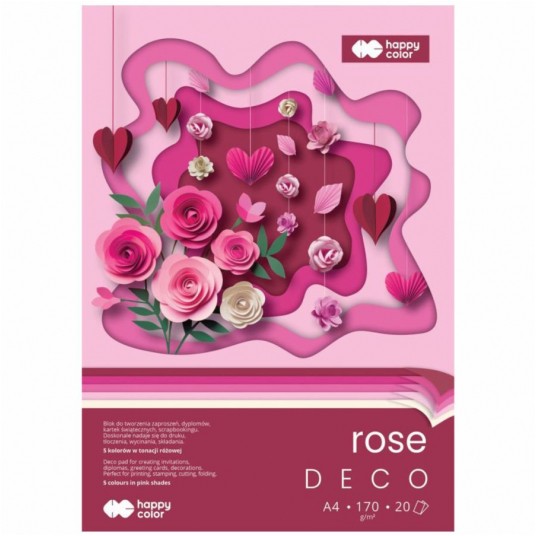 - Blok Deco idealny do tworzenia zaproszeń i kartek okolicznościowych - Papier barwiony w masie o gładzonej powierzchni - Tonacje dobrane tak aby łatwo można było łączyć kolory ze sobą - Wysoka odporność na blaknięcie przez promienie UV - Bezkwasowy, bezdrzewny - Nadaje się do drukarek atramentowych i laserowych - Certyfikaty: FSC, PEFC, SGS, ISEGA, ISO 9706 - Zastosowanie: scrapbooking, zaproszenia, kartki, dekoracje, wycinanki - Format: A4 - Gramatura: 170 g/m2 - 20 arkuszy - Motyw: Rose