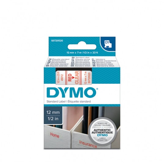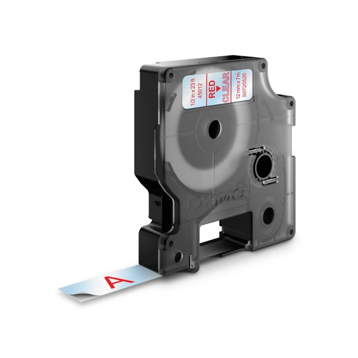 - Taśma Dymo D1 12mm x 7m przezroczysta/ czerwony nadruk