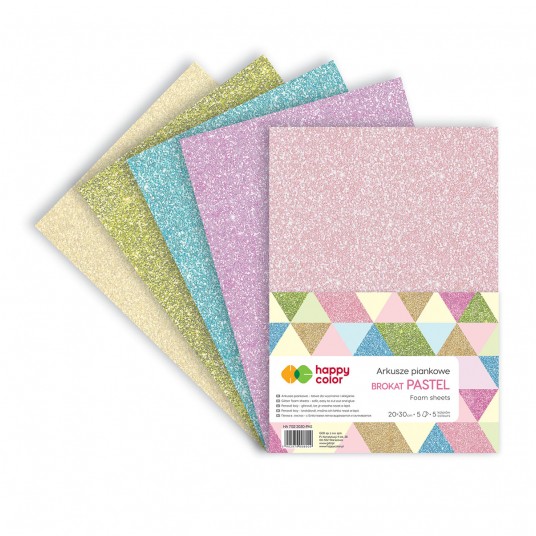 - Elastyczne i miękkie arkusze z mikrogumy z efektem brokatu - Są łatwe do wycinania, zszywania i sklejania - Idealne do tworzenia prac, które uzyskują efekt przestrzenny, na kartki świąteczne, laurki - Doskonałe do tworzenia dekoracji na ściany pokoju dziecka, do tworzenia zabawek oraz modeli pływających i podwieszanych, a także ozdób - Grubość 2 mm - Format A4 - 5 arkuszy w opakowaniu - Efekt: brokat (jednostronny) - Kolor: mix kolorów pastelowych (różowy, fioletowy, błękitny, zielony, złoty)