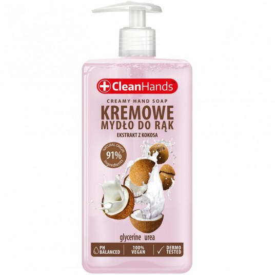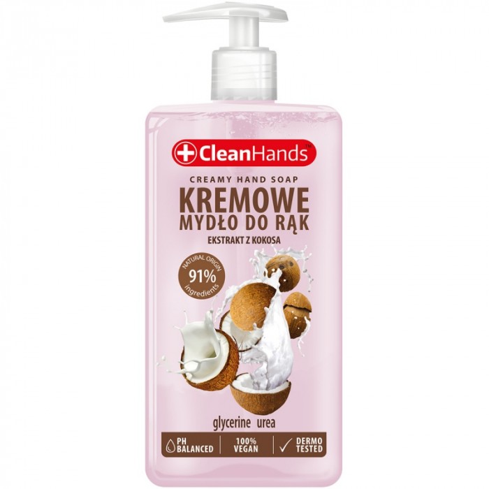 Kremowe mydło do rąk z ekstraktem z kokosa delikatnie myje, pielęgnuje i odświeża skórę dłoni, pozostawiając na nich słodki, apetyczny zapach. Formuła wzbogacona o glicerynę, mocznik oraz kwas mlekowy działa ochronnie i zmiękczająco na skórę. Zawiera 91% składników pochodzenia naturalnego, dzięki czemu mydło jest łagodne i delikatne dla skóry, a ręce po użyciu aksamitnie gładkie. Przebadane dermatologicznie. Produkt wegański.