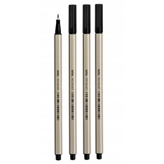 Cienkopis heksagonalny 0.7 mm (blister 4 szt. czarny). Wentylowana skuwka. Odporna na złamanie końcówka. Fibrowa końcówka zapewnia precyzyjną linię pisania.