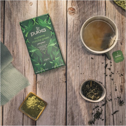 Pukka Supreme Matcha Green to unikalna kompozycja, która łączy w sobie właściwości zielonej herbaty i dobroczynne działanie Matchy. Starannie stworzona mieszanka skrywa w sobie trzy rodzaje zielonej herbaty, są to: chińska herbata Snacha, indyjska herbata Oothu, wietnamska Suoi Gang. Składniki ekologicznej zielonej herbatki Pukka to doskonałe źródło naturalnej energii. Skosztuj zielonej herbaty Pukka Supreme Matcha Green i poczuj, jak Twoje ciało na nowo wypełnia witalność – wystarczy jeden łyk! Stworzona przez ekspertów mieszanka z użyciem synergii ziół na cały dzień: Chińska herbata Sencha – chroni przed chorobami układu krążenia i zaburzeniami wątroby Indyjska herbata Oothu – obniża ciśnienie, działa antyoksydacyjnie Wietnamska herbata Suoi Giang – działania odprężające, redukujące stres Matcha – działa pobudzająco, oczyszczająco, wspiera odporność Każda torebka herbaty Pukka zawiera starannie wyselekcjonowane liście, które pozyskiwane są z poszanowaniem środowiska naturalnego naszych plantacji. 100% produktów certyfikowanych ekologicznie. Aromat z całkowicie naturalnych źródeł. Opakowanie z certyfikatem FSC/PEFC. Kompostowalne torebki. Nadające się do recyklingu kopertki. Tusz na bazie składników wegańskich. Certyfikaty: Fair Wild, Fair for Life, Carbon Net Zero commitment. Sposób przygotowania: zalać wrzątkiem (200ml) i parzyć minimum 4 minuty, aby rozkoszować się bogatym smakiem starannie dobranych składników. Skład: herbata zielona Sencha (34 %), herbata zielona z Wietnamu (Pin Ho Wild Jade) (32 %), herbata zielona z Indii (32 %), herbata Matcha (Jeju Island Emerald) (2 %), 1składnik ekologiczny Opakowanie: 20 kopert Waga: 30g
