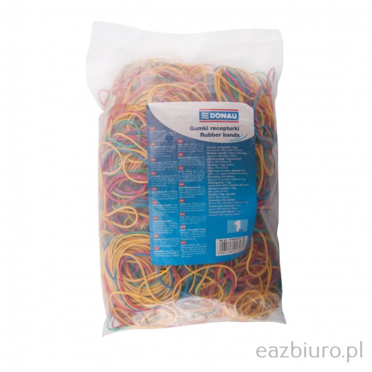 - Wykonane z materiału o zwiększonej domieszce kauczuku (80%) - Wielokolorowe - Wytrzymałe i elastyczne - Rozciągliwość w warunkachlaboratoryjnych: 650 - 700% - Średnica: 57 mm - Dostępne opakowania: 0,1,0,5 lub 1 kg - Ilość gumek: 400 (± 2%), 1450 (± 2%) lub 2900 (± 2%)