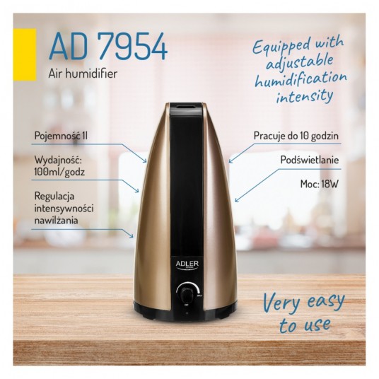 Nawilżacz powietrza ADLER AD 7954, 1L, złoto brązowy