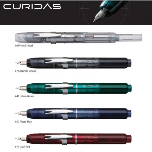Pióro wieczne japońskiej marki Platinum z kolekcji Curidas, kolor Grand Red. Pióro wieczne marki Platinum z kolekcji Curidas zdecydowanie różni się od wielu tradycyjnych piór wiecznych. Curidas to połączenie japońskiego słowa Kuridasu odnoszącego się do przedłużenia końcówki pióra i słowa Curiosity. To nowe pióro wieczne zostało powołane do życia, aby zaspokoić ciekawość ludzi. Przyciskowy mechanizm wysuwu stalówki jest bardzo wygodny. Pióro jest natychmiast gotowe do działania, bez potrzeby zdejmowania skuwki. Kolejne kliknięcie powoduje schowanie stalówki i kiedy jest w tej pozycji, uszczelniona, zrobiona z miękkiego materiału komora na stalówkę, zapewnia nieprzepuszczalność powietrza. Specjalnie zaprojektowany klips, który można łatwo usunąć nie przeszkadza podczas pisania. Przezroczysta żywica pozwala zobaczyć wnętrze pióra. Curidas to idealne pióro dla osób ceniących ciekawe, techniczne rozwiązania. Pióro wieczne umieszczone jest w eleganckim firmowym pudełku. Posiada nabój atramentowy na strat.