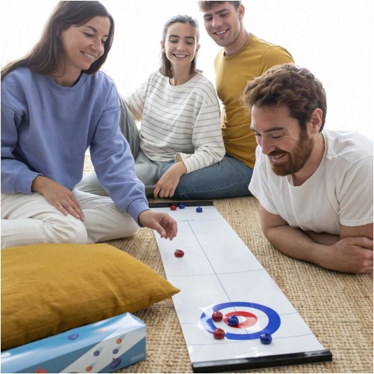 gra zręcznościowa zestaw do curlingu z lekkim, zwijanym torem składana, kompaktowa zabawka jest idealna do zabrania wszędzie ze sobą zestaw zawiera: zwijany tor oraz 4 niebieskie i 4 czerwone „kamienie” z metalowymi wkładami zapewniającymi dobry poślizg gra dla 2 do 8 graczy przeznaczona dla dzieci od 6 lat i dorosłych wymiary opakowania: 37 x 7 x 7 cm