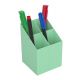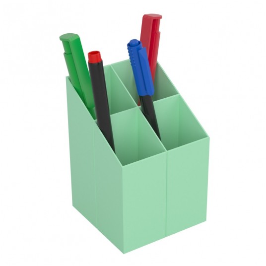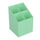 przybornik na biurko, niezbędny do podstawowej organizacji akcesoriów biurowych trwały i stabilny wykonany z odpornego na pęknięcia tworzywa z czterema przegrodami o głębokości 90 mm i 110 mm wymiary: 75 x 75 x110 mm kolor: pastelowy zielony