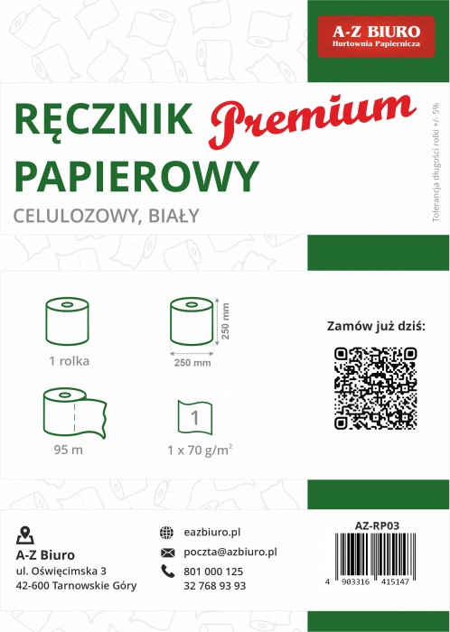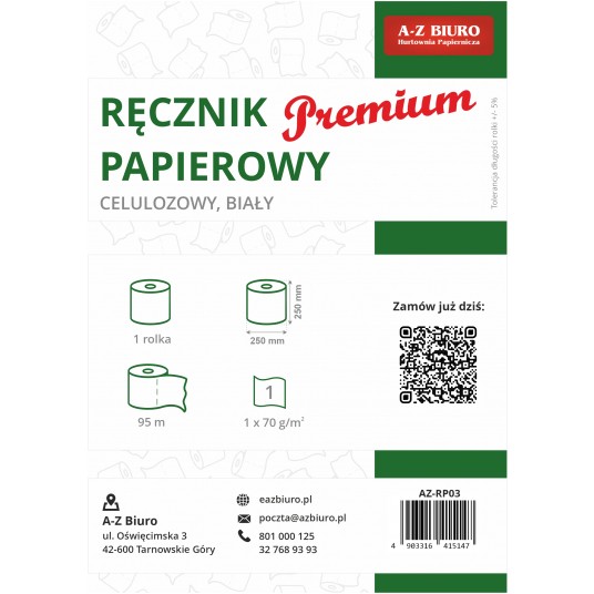 - Wytrzymały Ręcznik Celulozowy o wysokich właściwościach absorpcyjnych- Stosowane w branżach: Przemysł, HoReCa, Medi & Spa, Fryzjer- Kolor: biały- Surowiec: celuloza- Ilość warstw: 1- Długość: 95 m- Gramatura 70g.