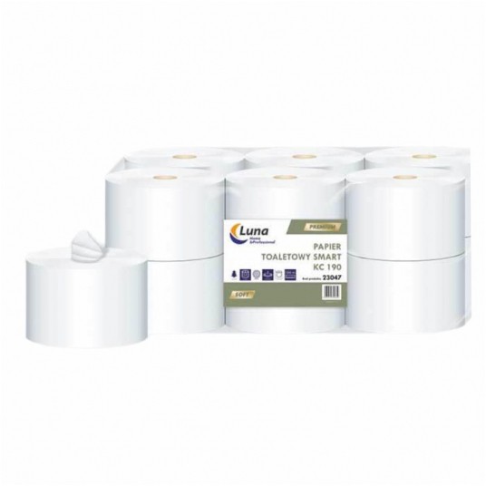 Wysokiej jakości papier toaletowy centralnego dozowania - z wyjmowaną gilzą - przeznaczony do toalet o średnim i dużym natężeniu ruchu. Dozowanie odcinek po odcinku zmniejsza zużycie papieru o 40%, oraz podnosi poziom higieny, gdyż dotykany jest jedynie listek, który ma zostać użyty. Papier KC190 pasuje do dozowników centralnego dozowania Luna 1017, 1018, 1019 oraz dozowników w systemie Kimberly-Clark. Polecany do: - służby zdrowia, - stacji benzynowych, - branży gastronomicznej, - zakładów pracy, - hoteli, - wszystkich miejsc użyteczności publicznej o średnim i dużym natężeniu ruchu.