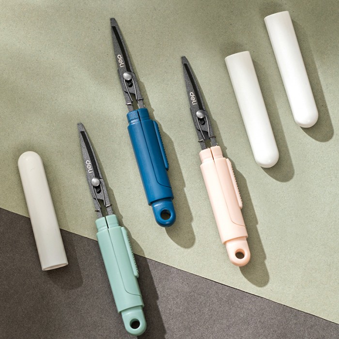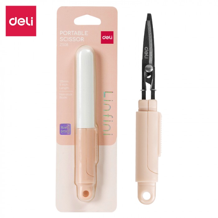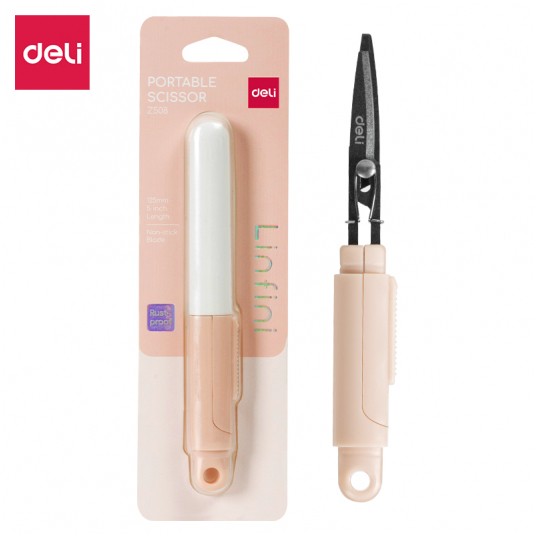 Kompaktowe nożyczki Deli EZ508 w bezpiecznym etui różowe