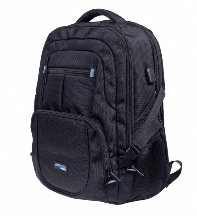 wszechstronny plecak, który pomieści laptopa 17'' idealnie sprawdzi się podczas dłuższych podróży wykonany z nieprzemakalnego materiału oxford i żakardu, z podszewką 210D przednia kieszeń bez powłoki nieprzemakalnej wyposażony w gniazdo USB oraz kabel USB-C posiada kieszeń na laptopa i tablet oraz ukrytą kieszeń chroniącą przed kradzieżą, co gwarantuje ochronę i komfort użytkowania pojemność: 35 l wymiary: 35x21x47 cm materiał: oxford, nieprzemakalny materiał dodatkowy: żakard gwarancja: 5 lat kolor: czarny