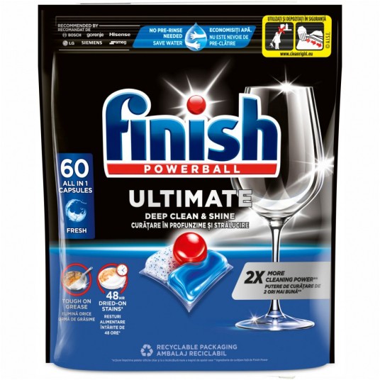 - Finish Ultimate All in 1 Fresh to kapsułki do zmywarki klasy premium, które zapewniają maksymalną skuteczność czyszczenia już od pierwszego cyklu