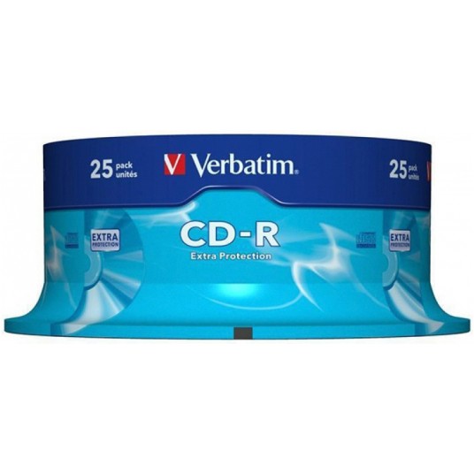- Specyfikacja mechaniczna nośnika firmy Verbatim jest bardzo precyzyjna, a zapisane na nim dane można odczytać w wielu napędach - Dyski Verbatim zapewniają wysoki poziom zgodności z napędami działającymi z różnymi szybkościami - Nośniki CD-R wykują doskonałą odporność na promieniowanie ultrafioletowe (UV), ich okres przechowywania określa się na 100 lat - Opakowanie 25 szt.
