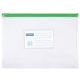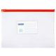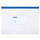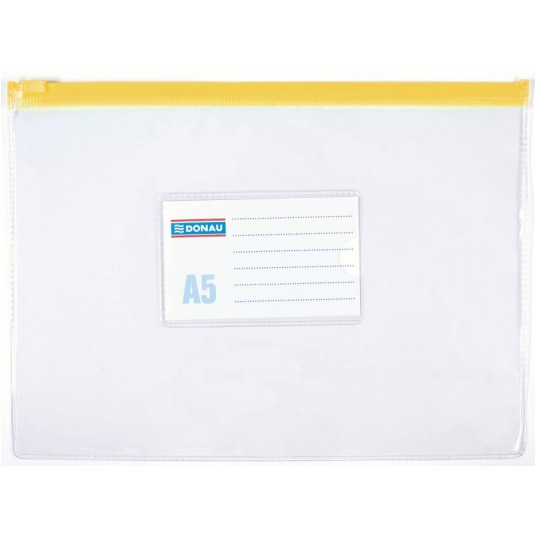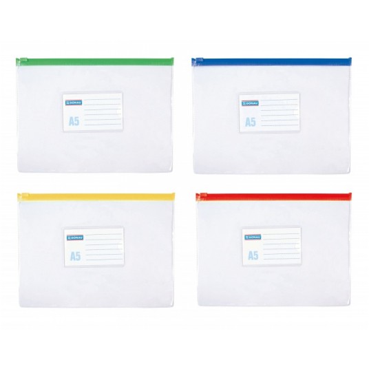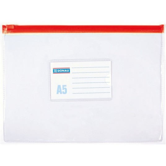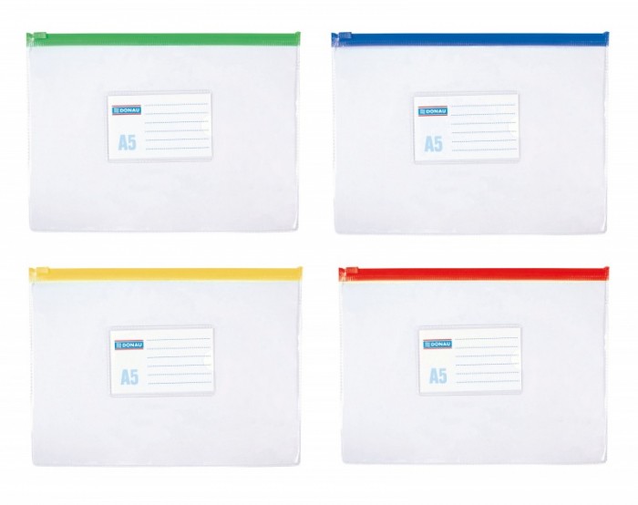 - Sztywne, wykonane z trwałego materiału PVC (170 µm) - Przeznaczone na dokumenty w formacie A5 - Plastikowy zamek błyskawiczny - Otwierane / zamykane wzdłuż dłuższego boku - Przezroczyste - Wymiary zewnętrzne: 240 x 180 mm - Kolor paska zamykającego losowy