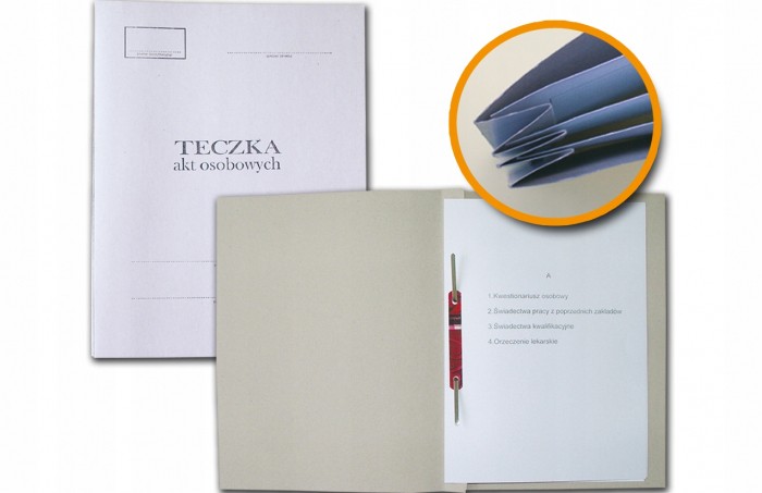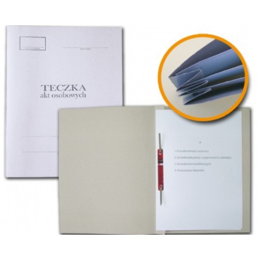 - Teczka do akt osobowych wykonana z jasnej, sztywnej tektury - Wyposażona wewnątrz w przekładki ABCD - Dokumenty wpinane za pomocą mechanizmu skoroszytowego - Jednostka sprzedaży 1 sztuka