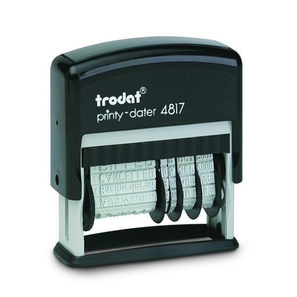- Datownik samotuszujący z 12 gotowymi hasłami: „Zapłacono”, „Gotówka”, „Druki”, „Polecony”, „Express”, „Oryginał”, „Anulowano”, „Przelew”, „Kopia”, „Pilne”, „Wpłynęło”, „Poufne”