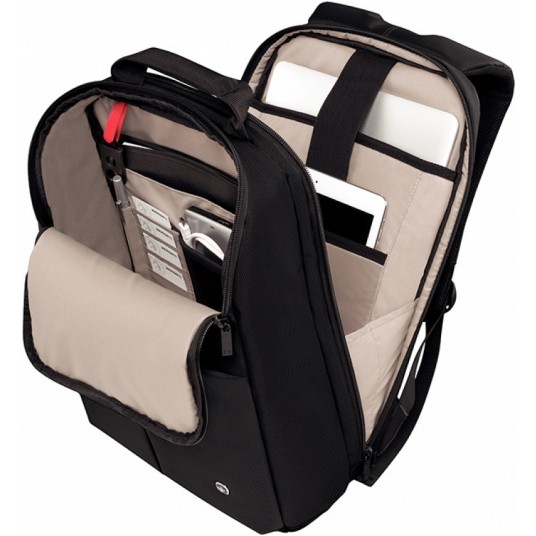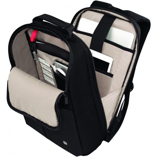 - usztywniona przegroda na laptopa 14"/36cm oraz dedykowana kieszeń na tablet/czytnik 10"/25cm - usztywniony tylny panel - zapewniające komfort paski naramienne dopasowane do konturu ramion posiadają dodatkową wygodną wyściółkę - miękki wyściełany uchwyt zapewnia maksymalny komfort podczas noszenia torby w ręku - kieszeń Quik Pocket zapewnia łatwy dostęp do przedmiotów, z których najczęściej korzystasz - organizator na niezbędne akcesoria dzięki systemowi kieszeni utrzymuje porządek wśród przedmiotów takich jak przewody, ładowarki czy wizytówki i sprawia, że są one łatwo dostępne - wielofunkcyjna boczna kieszeń z zamkiem błyskawicznym może przechowywać butelkę z wodą - przednia kieszeń z zamkiem błyskawicznym - pasek Pass-Thru wsuwa się na system uchwytu bagażu na kółkach, ułatwiając dzięki temu podróżowanie - waga: 0,96kg - pojemność: 11L - wymiary: 280x420x170mm - materiał: poliester - gwarancja: 3 lata - kolor: czarny