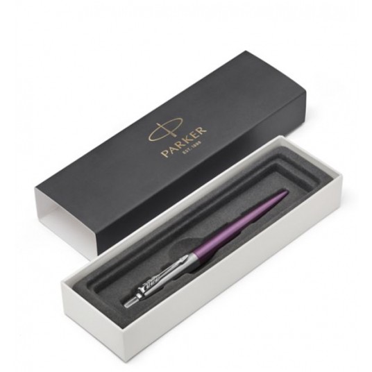 - Korpus długopisu Parker Jotter CORE Victoria Violet CT wykonano ze szlifowanej stali, pokrytej fioletowym lakierem
