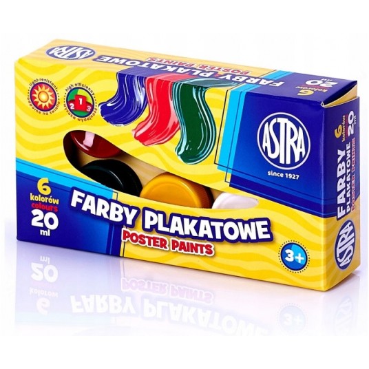 - Farby plakatowe 6 kolorów o pojemności 20ml
