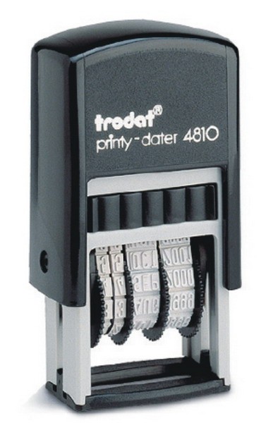 - Datownik samotuszujący Trodat z serii Printy w eleganckiej obudowie wyprodukowanej w 70% z odzyskanego plastiku - Przydatny szczególnie do stemplowania korespondencji firmowej, potwierdzenia odbioru gotówki, dostawy towaru itp. - Datowniki dostępne w wersji polskiej (POL) i ISO (miesiąc w wersji cyfrowej) - Wersja POL - Kolor czarny