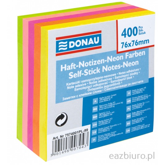 - Substancja klejąca usuwalna za pomocą wody - Karteczki w żywych, fluorescencyjnych kolorach nie pozwalają przeoczyć pozostawionej informacji - Idealne do pozostawienia wiadomości zarówno w biurze jak i domu - Możliwość przeklejania karteczek - Gramatura: 75 g/m2