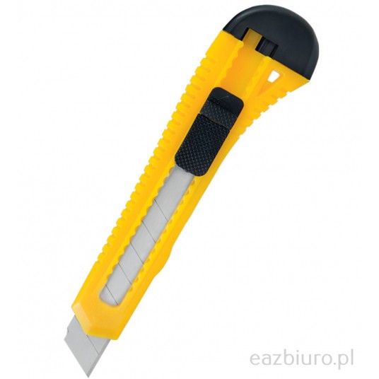 - Nóż do papieru w plastikowej obudowie - Karbowane brzegi zapewniają lepszy chwyt - Grubość uchwytu 0,5 cm - Posiada otwór do zawieszania i blokadę ostrza - Wyposażony w wysuwane, łamane ostrze (7 części) - Szerokość ostrza 18 mm - Wymiana ostrza następuje po naciśnięciu guziczka w uchwycie - Przeznaczony do zwykłych prac