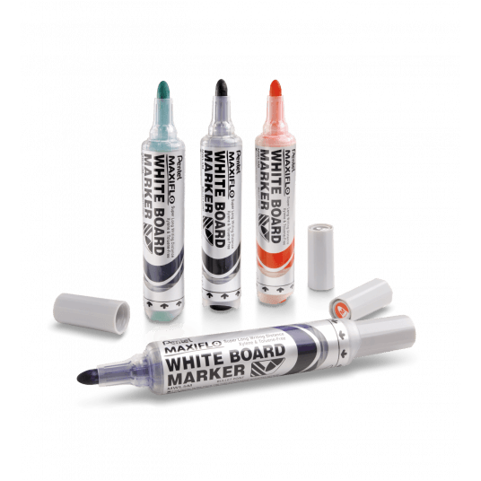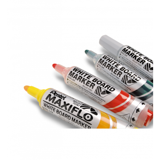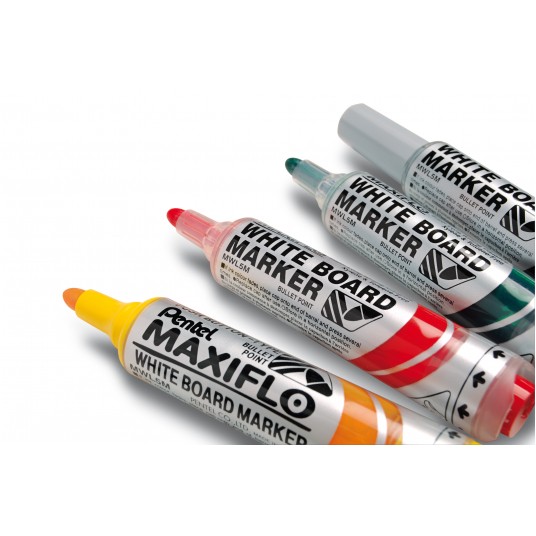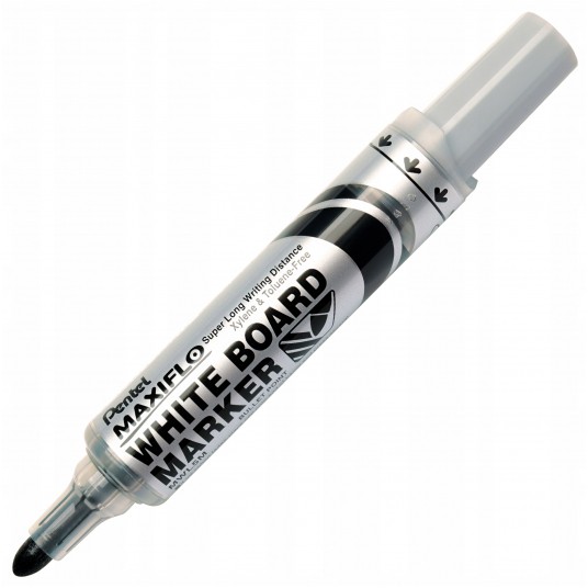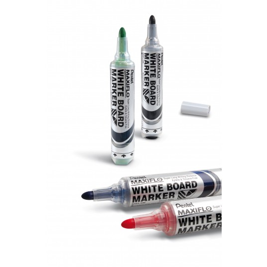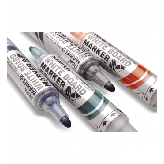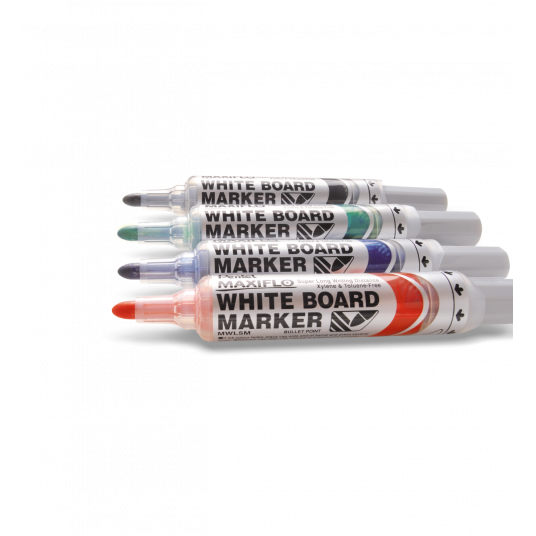 - Marker MAXIFLO do białych i ceramicznych tablic. - Płynny tusz dozowany w razie konieczności nawilżenia końcówki za pomocą tłoczka (zamiast tradycyjnego sączka). - Marker pisze wyrazistą linią aż do ostatniej kropli tuszu. - Kilkakrotnie dłuższa linii pisania niż w standardowych markerach z sączkiem - 1100 m. - Nie zawiera substancji trujących ksylenu, toluenu ani polichlorku winylu. - Nadaje się również na papier, plastik, karton. - Wykonany w 50% z materiałów przetworzonych.