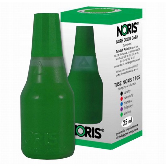 - Tusz wodny Noris 110S do znakowania papieru.- Do pieczątek ręcznych i samotuszujących, z gumową lub polimerową płytką stemplującą. - Buteleczka 25 ml z końcówką ułatwiającą nasączenie poduszek oraz nakrętką w kolorze tuszu.- Cena za sztukę