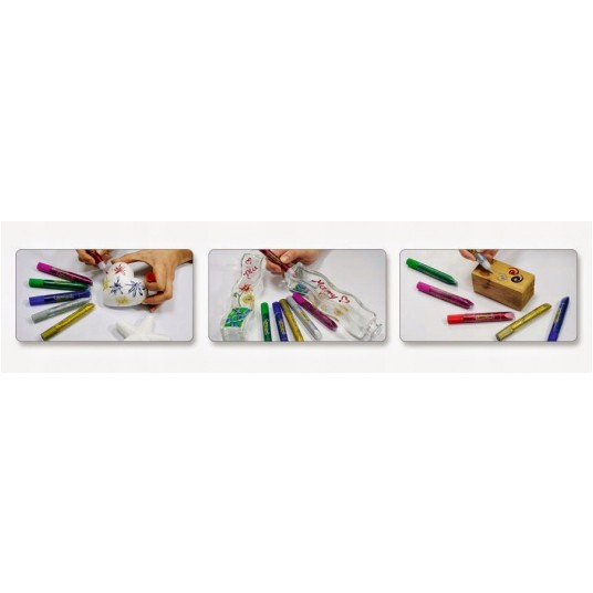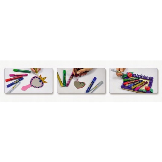 - Dekoracyjny klej w płynie zawierający drobinki brokatu, przeznaczony do dekoracji papieru, kartonu, drewna i innych powierzchni - Wygodny: namaluj wzór za pomocą kleju i poczekaj aż zaschnie - Nie wymaga dodatkowych akcesoriów - Nie brudzi, nie rozsypuje się - Po zaschnięciu drobinki brokatu nie wykruszają się - Możliwe jest łączenie Glitter Glue z innymi technikami: farbami witrażowymi, Ciasto-Plasto - Neonowy klej zawiera drobinki brokatu - W zestawie 6 klasycznych kolorów - Pojemność: 6 x 10,5 ml - Zgodne z normą CE i z wymaganiami ACM Institute INC. USA