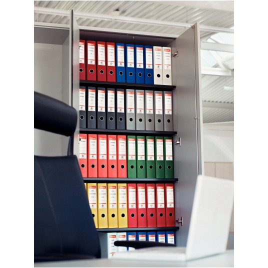 - Mechanizm standardowy - Okładka z polipropylenu z szarym papierem wewnątrz - Na grzbiecie kieszeń na wymienne etykiety służące do opisu zawartości - Otwory blokujące przednią okładkę, otwór na palec na grzbiecie i metalowe okucia na dolnych krawędziach ułatwiają użytkowanie i bezpieczne przechowywanie dokumentów - Mieści 350 kartek A4 (80 gsm) - Certyfikat FSC® - Zaprojektuj i wydrukuj swoje etykiety ze strony www.esselte-easyprint.com