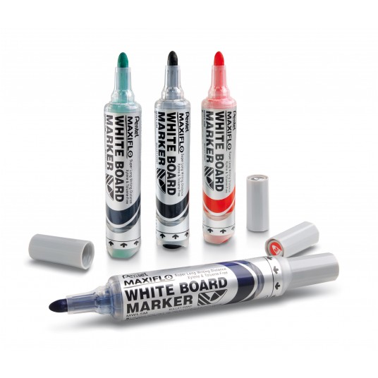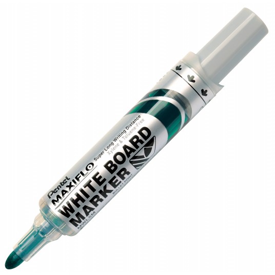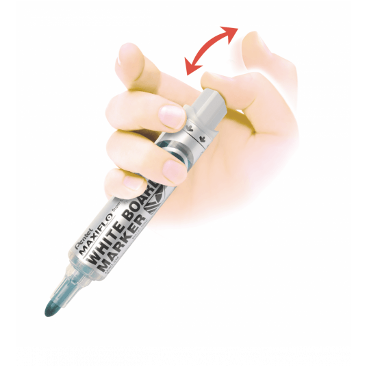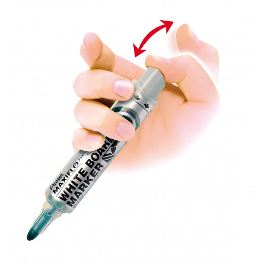 - Marker MAXIFLO do białych i ceramicznych tablic. - Płynny tusz dozowany w razie konieczności nawilżenia końcówki za pomocą tłoczka (zamiast tradycyjnego sączka). - Marker pisze wyrazistą linią aż do ostatniej kropli tuszu. - Kilkakrotnie dłuższa linii pisania niż w standardowych markerach z sączkiem - 1100 m. - Nie zawiera substancji trujących ksylenu, toluenu ani polichlorku winylu. - Nadaje się również na papier, plastik, karton. - Wykonany w 50% z materiałów przetworzonych.