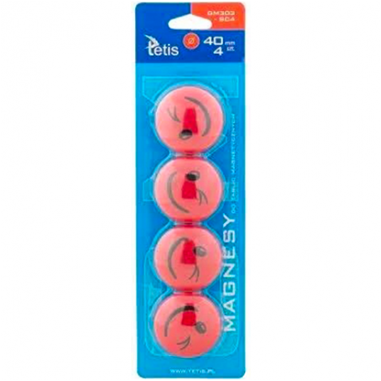 - Magnesy Tetis są niebywale mocne i trwałe, zapewniają prosty i praktyczny sposób przymocowania dokumentu lub notatki do powierzchni magnetycznych - Doskonałe do tablic i innych powierzchni magnetycznych - Pakowane na blistrze - Średnica: 40 mm - Kolor: czerwony - Wzór: z uśmiechem - Ilość: 4 sztuki