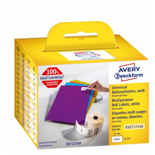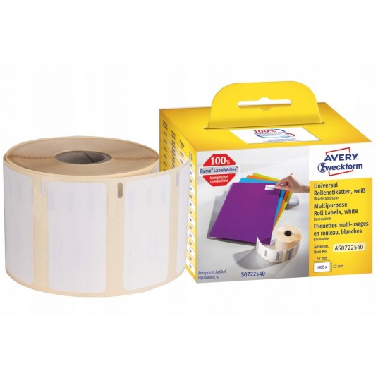 - Usuwalne etykiety uniwersalne Avery Zweckform w rolce do drukarek termicznych