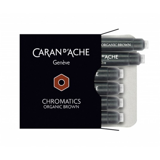 - Naboje atramentowe szwajcarskiej marki Caran d’Ache z kolekcji Chromatics - Charakteryzują się niezwykle intensywnym pigmentem, który nadaje im charakter i styl - Naboje umieszczone są w eleganckim, firmowym kartoniku - W zestawie znajduje się 6 nabojów - Kolor: brązowy