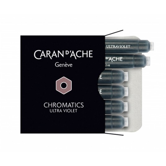 - Naboje atramentowe szwajcarskiej marki Caran d’Ache z kolekcji Chromatics - Charakteryzują się niezwykle intensywnym pigmentem, który nadaje im charakter i styl - Naboje umieszczone są w eleganckim, firmowym kartoniku - W zestawie znajduje się 6 nabojów - Kolor: fioletowy