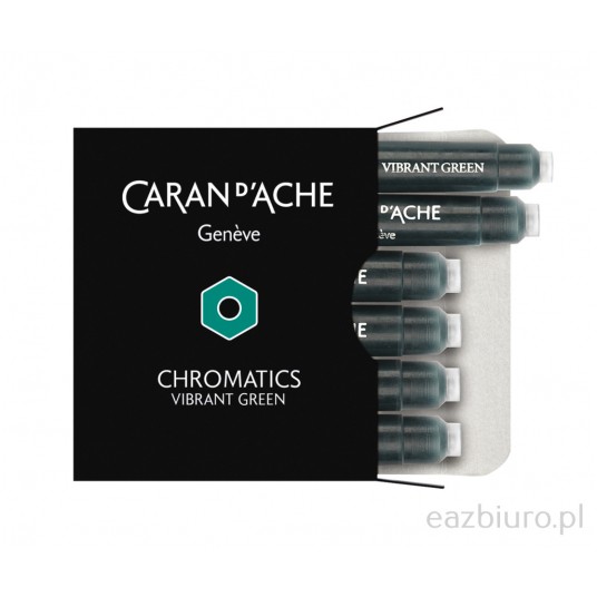 - Naboje atramentowe szwajcarskiej marki Caran d’Ache z kolekcji Chromatics - Charakteryzują się niezwykle intensywnym pigmentem, który nadaje im charakter i styl - Naboje umieszczone są w eleganckim, firmowym kartoniku - W zestawie znajduje się 6 nabojów - Kolor: ciemnozielony