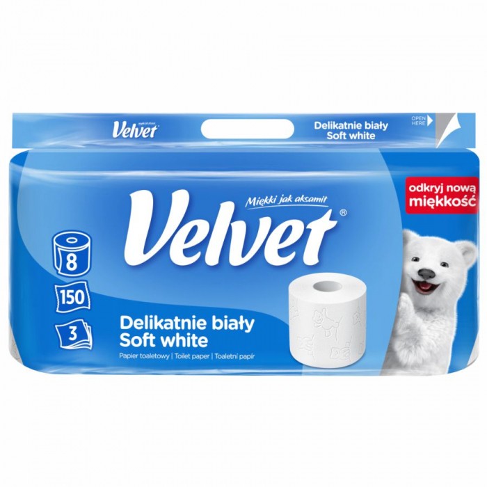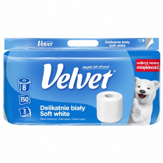 Papier toaletowy celulozowy Velvet delikatnie biały 3-warstwowy 8 rolek