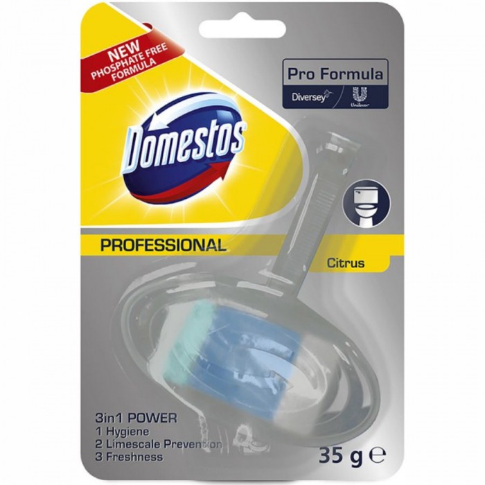 - Domestos Pro Formula Rim Blocks 3in1 Power utrzymują twoją toalete w czystości i swieżości, pomagając jednocześnie zapobiegac osadzaniu się kamienia - Innowacyjna kostka została zaprojektowana tak, aby idealnie pasowała do muszli klozetowej - Higienicznie czysta toaleta z dodatkową zaletą uwalniania swiezego zapachu - Po prostu zawieś kostkę na krawedz toalety i będzie czyszczona przy kazdym spłukaniu!