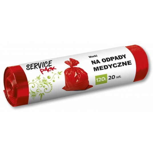 - Worki na śmieci Service Pack wykonane są z regranulatu pochodzącego z recyklingu odpadów foliowych i nadają się do ponownego recyklingu - Worki przeznaczone do pakowania odpadów medycznych - Wykonane z folii LDPE z regranulatu, dzięki czemu są wytrzymałe na obciążenia i przypadkowe rozdarcia - Posiadają zgrzew boczny, co znacznie zwiększa wytrzymałość i szczelność dna worka - Przeznaczone na odpady medyczne, sanitarne - Do wykorzystania przez szpitale, przychodnie, apteki, gabinety lekarskie - Posiadają tzw. boczny zgrzew dna - Wykonane są z folii LDPE - Kolor czerwony - Ekologiczne - worki na śmieci z regranulatu - Pojemność: 120 litrów - Długość worka: 105 cm - Szerokość worka: 70 cm - Rodzaj foli: LDPE z regranulatu - Grubość folii: 26 µm - 20 sztuk na rolce