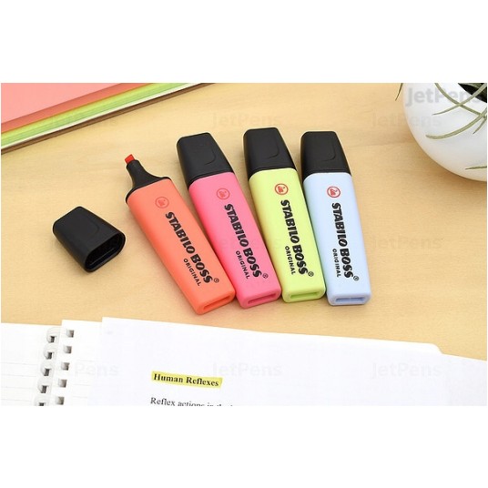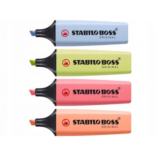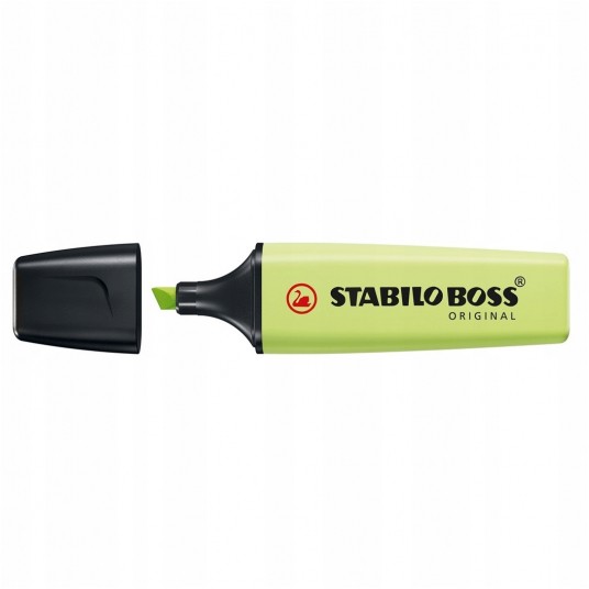 - STABILO GREEN BOSS - klasyczny zakreślacz w wersji eko - Wykonany jest aż w 83% z plastiku, pochodzącego z recyklingu - Dzięki technologii STABIO Anti Dry-Out pozostawiony bez skuwki nie zasycha nawet przez 4 godziny - Dostępny w czterech podstawowych kolorach neonowych: żółty, pomarańczowy, zielony i różowy - Zakreślacze mogą też być ponownie napełniane za pomocą STABILO BOSS refill - Grubość linii 2-5 mm - Opakowanie: plastikowe etui zawierające 4 szt.