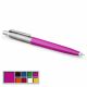 - Elegancki smukły długopis Jotter w kolorze purpurowym o klasycznym wyglądzie. - Idealny dla wszystkich osób, które cenią dobry smak i minimalistyczny styl. - To dobry wybór dla wszystkich osób, które rozpoczynają przygodę z marką Parker. - Korpus długopisu został wykonany ze szczotkowanej stali, jego dolna część skłąda się z tworzywa sztucznego. - Wyposażony jest w przyciskowy mechanizm wysuwania wkładu. - Grubość: slim - Rodzaj lakieru: gładki