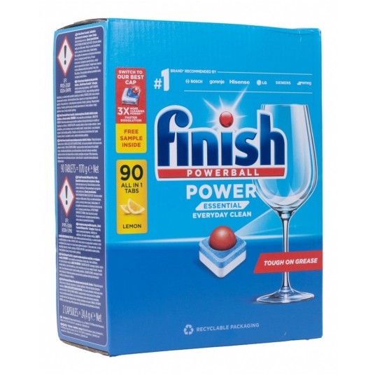 - Finish Classic tabletki do zmywarki 90 szt - Wielofunkcyjny produkt, który idealnie usuwa nawet uporczywy brud taki. - Dzięki mocy Powerball usuwają przypalone resztki jedzenia i nadają naczyniom olśniewający blask bez smug. - Proste w użyciu. - Brak konieczności dodatkowego rozpakowywania. - Tabletki zapewniają ochronę zarówno szklanym, jak i srebrnym naczyniom pozostawiając je lśniące. - Zapach cytryny. - Waga: 1440g.