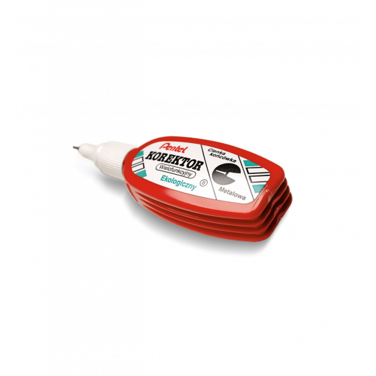 - Wielofunkcyjny korektor do tuszowania błędów na dokumentach, kserokopiach, wydrukach, notatkach. - Precyzyjna końcówka podaje płyn w idealnie wymierzonej ilości. - Bez kapania i plam. - Ekonomiczny – harmonijkowa obudowa pozwala na zużycie płynu do ostatniej kropli. - Produkt zawiera 4,2 ml płynu. - Niezastąpiony w biurze, domu, szkole, uczelni.