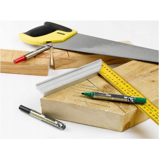 - Wykonany w technologii MAXIFLO. - Ekonomiczny system dozowania tuszu do końcówki – za pomocą tłoczka. - Dwukrotnie dłuższa linia pisania niż w standardowych markerach permanentnych. - Płynny tusz na bazie alkoholu. - Bezpieczny w użytkowaniu – nie zawiera ksylenu i toluenu – substancji szkodliwych dla zdrowia i środowiska. - Do wyboru kolor: czarny, czerwony, niebieski, zielony.