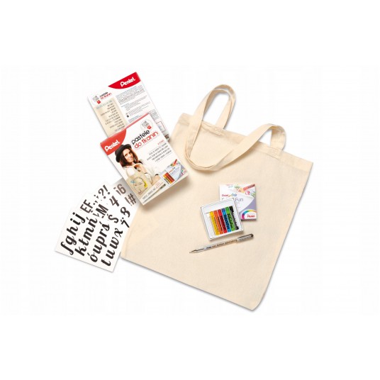 - Zestaw z modną, bawełnianą torbą w kolorze ecru to gotowy set dla miłośników najświeższych trendów - W komplecie oprócz pasteli i torby znajduje się również długopis żelowy BN15 znakomity do konturowania, dodawania detali, podpisywania rysunków i tworzenia haseł - Szablony – stylizowane litery alfabetu i 18 zabawnych propozycji haseł ułatwią ozdabianie, dodatkowo inspirując do samodzielnego wymyślania tekstów i aplikacji